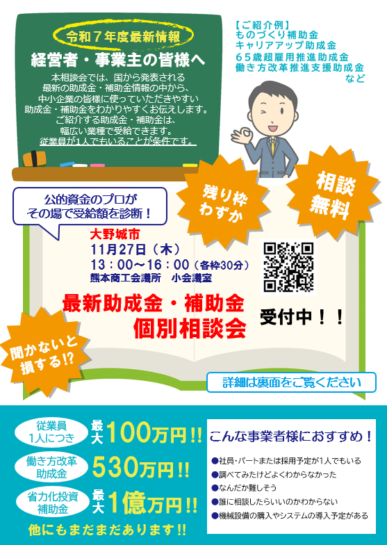 幅広い制度に対応(人材育成・雇用・設備導入など)