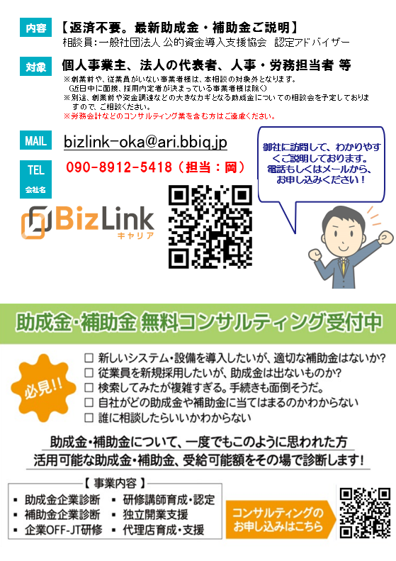 | 社名 | BizLink(ビズリンク) 公的資金導入支援協会代理店 |
